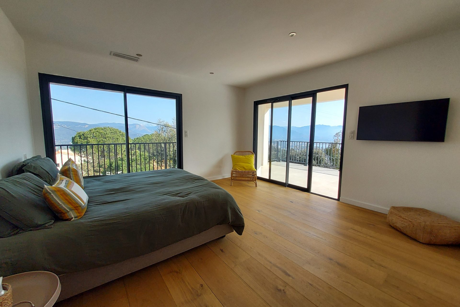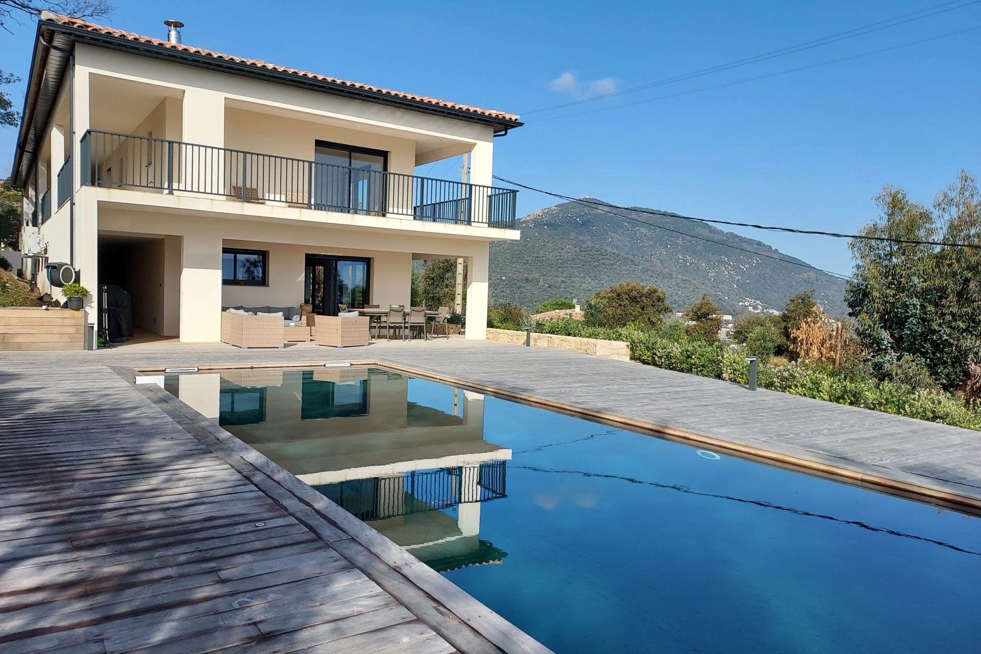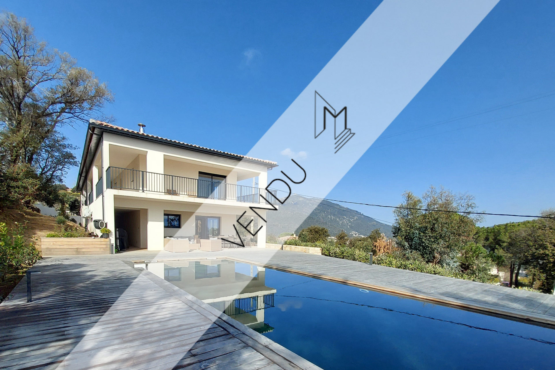 Sur les hauteurs d’Ajaccio, nous avons le plaisir de vous présenter à la vente une villa récente (2022) avec un intérieur de concept contemporain de type F6 avec une agréable vue mer et campagne dans une résidence fermée et sécurisée. La superficie habitable est de 260m² édifiée sur un terrain de 1800m² soigneusement arboré et clôturé avec piscine. La villa se compose d’une agréable pièce de vie avec cuisine équipée, cellier (100m²) , 1 suite parentale avec dressing, 4 chambres indépendantes avec salle d’eau, clims réversibles, conçue avec de nobles matériaux. Équipements très haut de gamme. Portail motorisé, place de parking. A seulement 5 mn du centre d’Ajaccio, et des plages. Pour tous renseignements complémentaires, merci de nous contacter au 06.70.47.74.30 ou au 04.95.21.10.84.