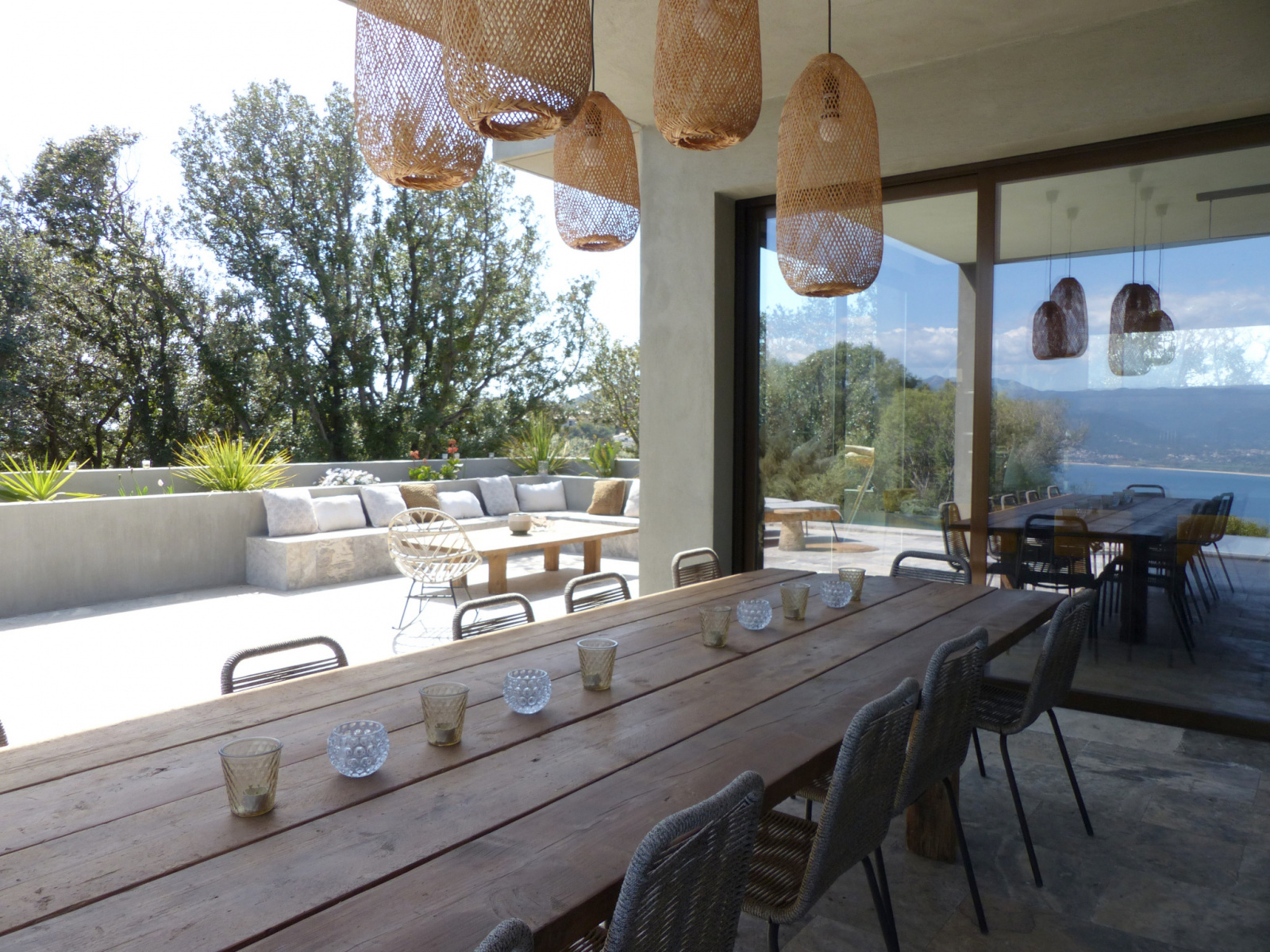 A 5mm du centre d’Ajaccio, venez découvrir cette magnifique villa contemporaine nichée dans un écrin de verdure entre mer et maquis dans un environnement calme et paisible, en position dominante face à la mer, cette demeure aux lignes épurées est très agréable à vivre, elle se compose d’une belle pièce de vie avec cuisine us équipée donnant sur salon avec cheminée avec accès direct sur une vaste terrasse avec piscine à débordement, un espace nuit comprenant 1 suite parentale avec salle de bains et dressing 2 chambres avec salle d’eau, 1 chambre d’appoint, 1 petit appartement pour recevoir les invités, un vaste garage, ce bien a été conçu avec de nobles matériaux,