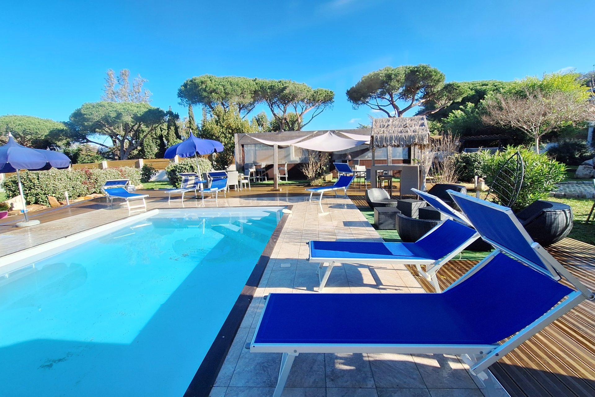 Villa sur 2 niveaux composée d’un grand T5, de deux F3 et d’un studio. Belles terrasses vue mer. Terrain clôturé et arboré agrémenté d’une piscine 10x4m.