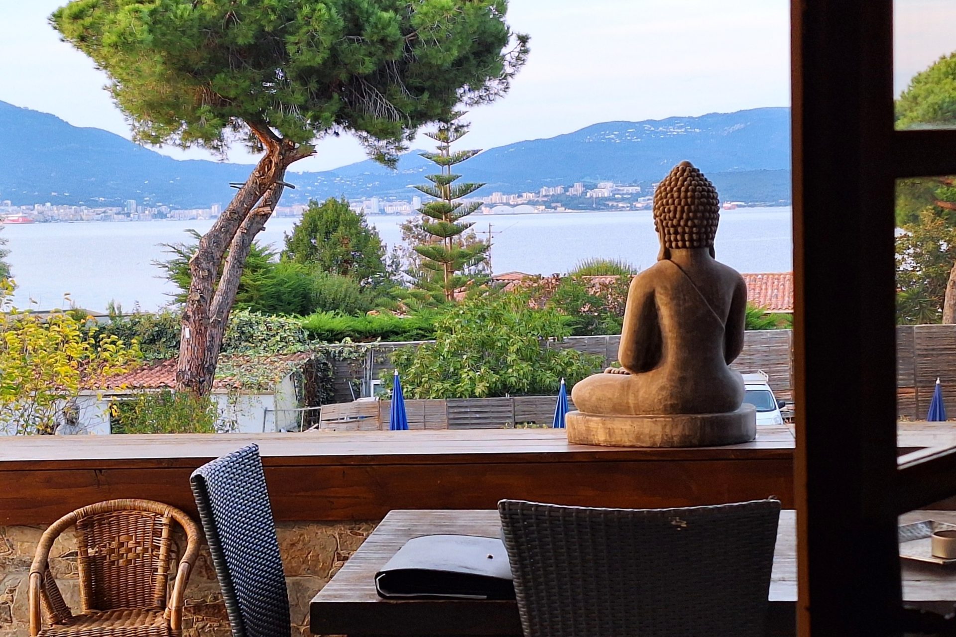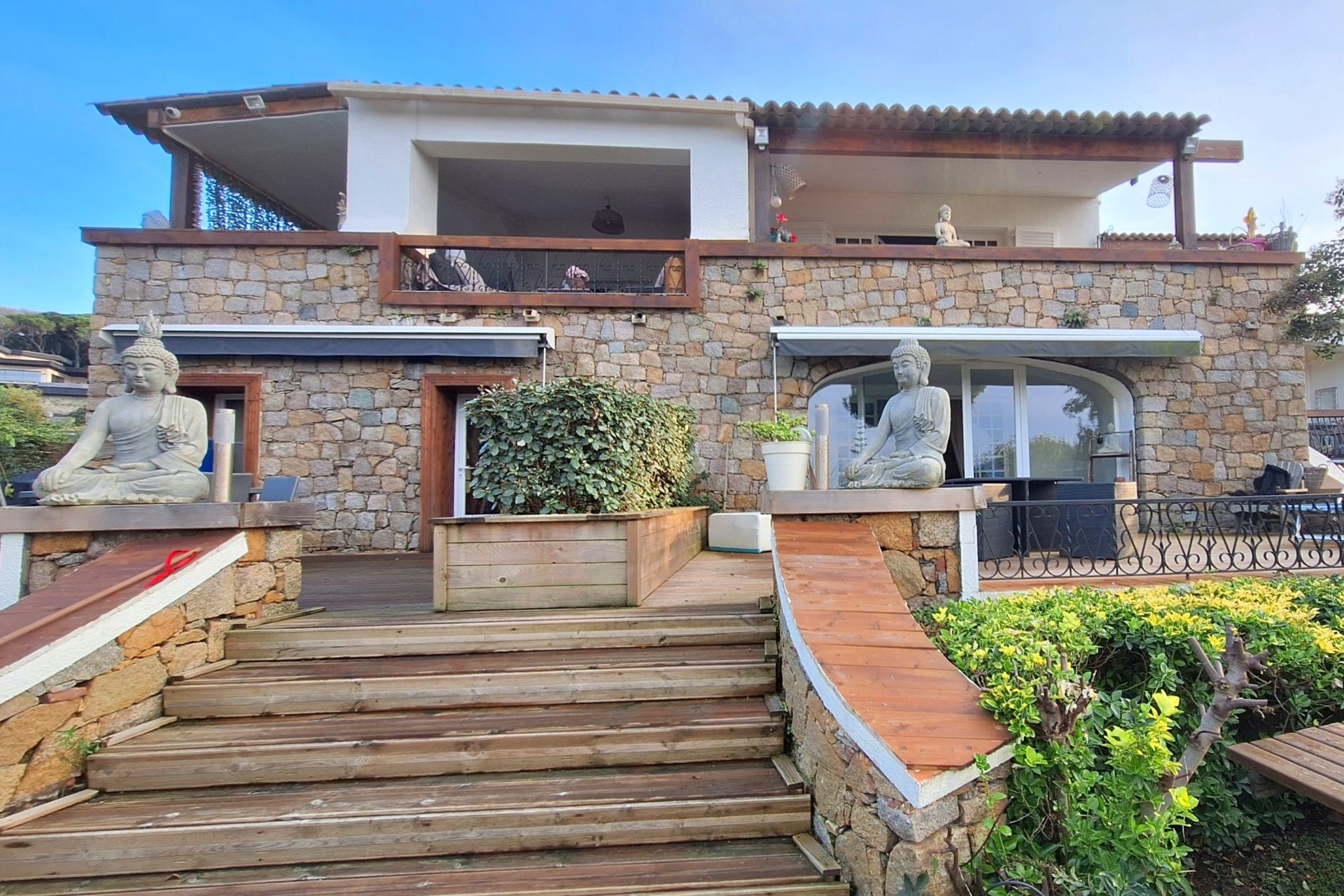 Rare et exceptionnelle; grande propriété d’environ 500m2 sur un terrain plat de 4000m2. Pratiquement pied dans l’eau, à 60m du bord de mer avec superbes criques abritées et ensoleillées, face au Golfe d’Ajaccio.