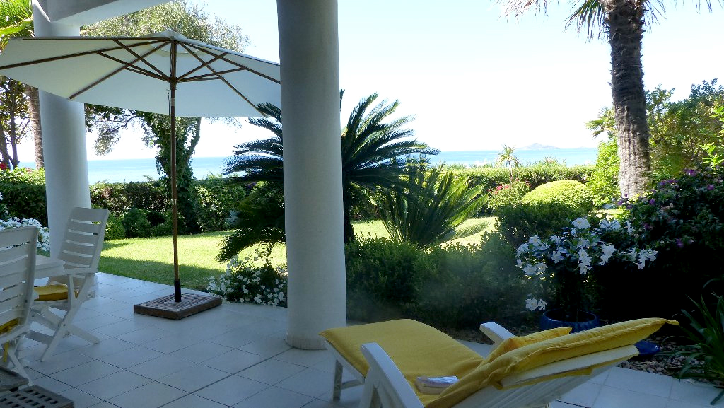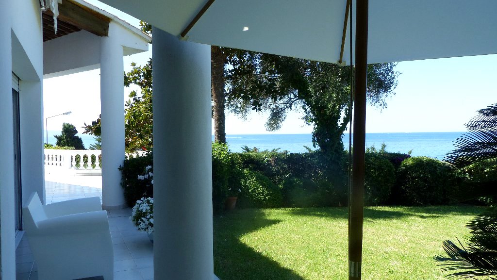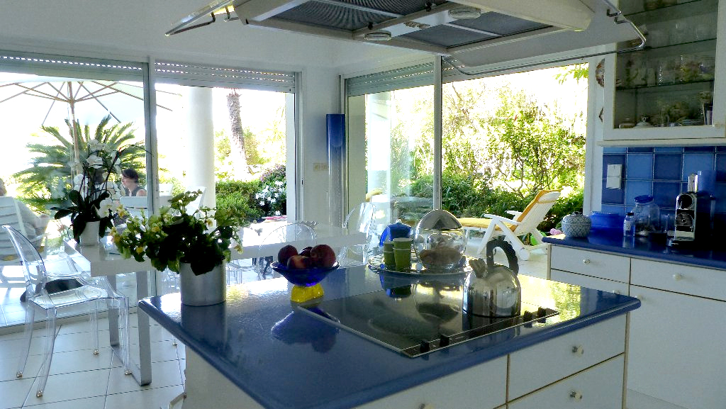 le tout édifié sur 1500m² de terrain soigneusement arboré avec portail motorisé, un double garage en sous sol, bus et plage au pied de la villa.