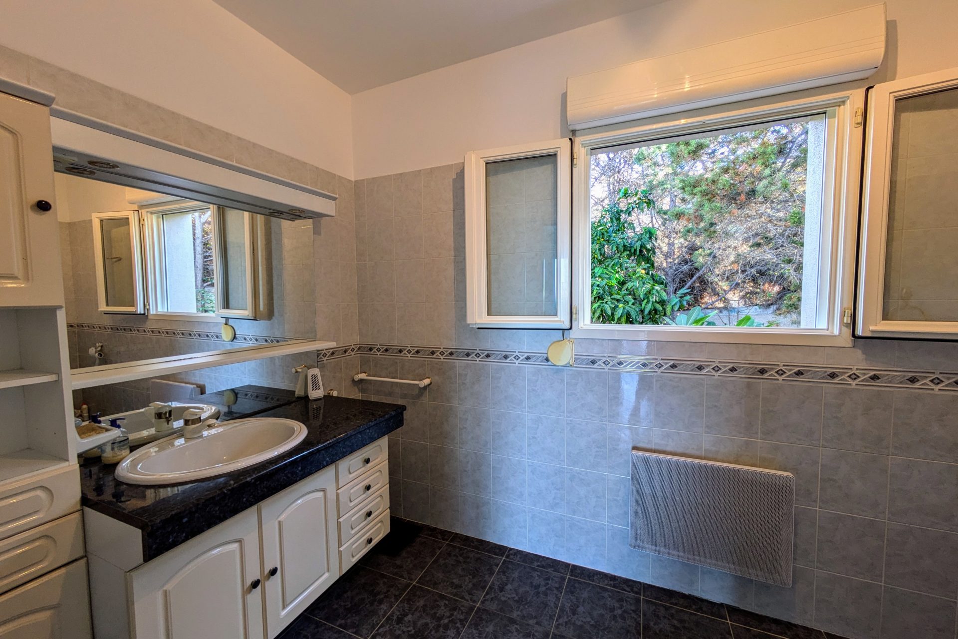 Le terrain piscinable de 1860 m2, arboré d’essences méditerranéennes, vous offre encore de belles possibilités d’aménagement. Au sous-sol se trouve un garage ainsi qu’une cave (environ 100m2).