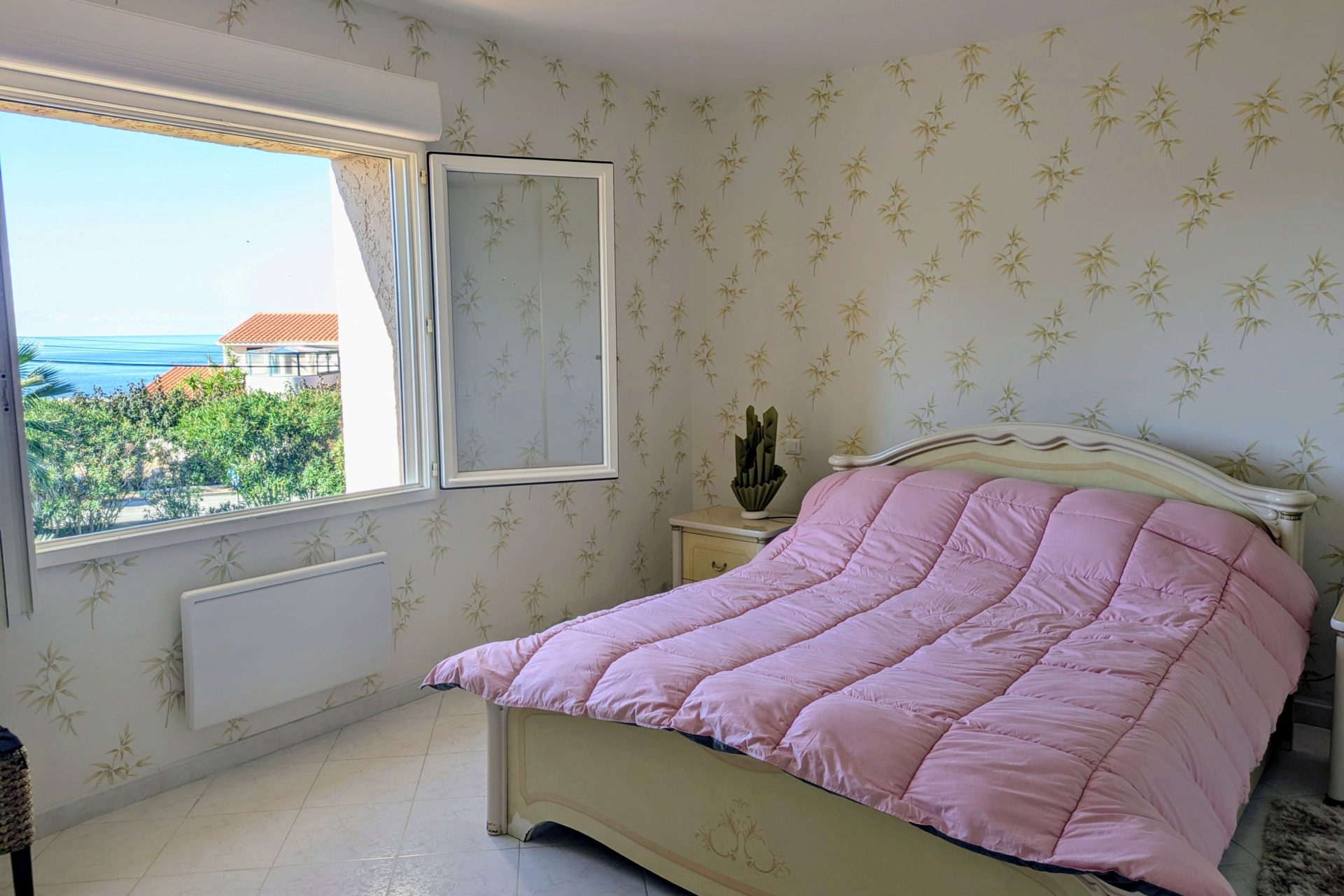 Toutes les pièces sont ouvertes sur une grande terrasse couverte de 41 m2, vue dégagée sur la mer, avec un coin barbecue.