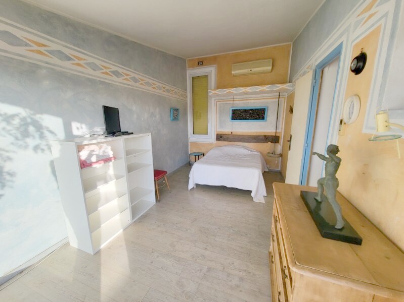 Dans un secteur résidentiel, calme et ensoleillé; charmante villa F4 – F5: édifiée sur 2 niveaux sur un terrain plat de 450m2 clôturé et arboré..Au rez-de-chaussée: séjour avec cuisine américaine ouverts sur une terrasse de 35m2, deux chambres, une chambre « cabine » , une salle d’eau – W.C; A L’étage, une grande chambre avec Salle d’eau-WC ouverte sur une terrasse de 35m2 avec vue sur mer. Un garage de 45m2 et deux places de parking extérieur complètent ce bien. La villa est vendu meublée.: Sols carrelés, double vitrage, cuisine équipée moderne, climatisation réversible… .