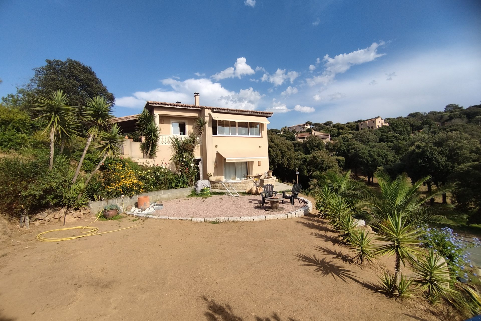 Cette maison édifiée sur un terrain de 1600m2, entouré d’aménagements paysagers et offrant la possibilité d’avoir une piscine. Elle bénéficie de deux entrées distinctes: l’une réservée aux logements du rez-de-jardin et l’autre exclusivement dédiée à l’habitation principale. Elle est idéalement située à proximité de toutes commodités et à seulement 400 mètres des plages, offrant une vue imprenable sur le golfe du Valinco. De plus, ses terrasses ajoutent un autre atout charmant à cette maison qui ne manquera pas de vous séduire.